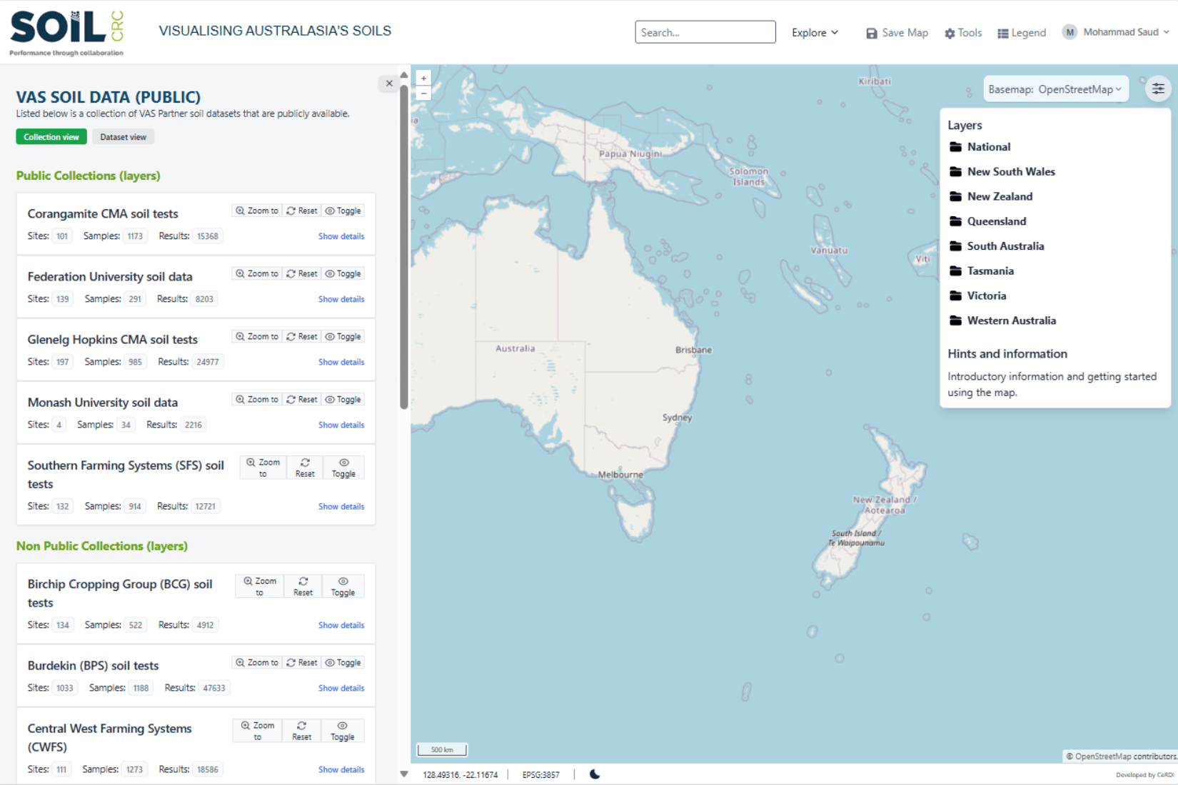 The Technical Build section provides a comprehensive overview of the underlying architecture and operational framework of the Visualising Australasia’s Soils (VAS) platform. It outlines the complete data lifecycle from acquisition and validation through to storage, access, and dissemination by demonstrating how each component of the platform integrates to support interoperable, standards-based soil data management.